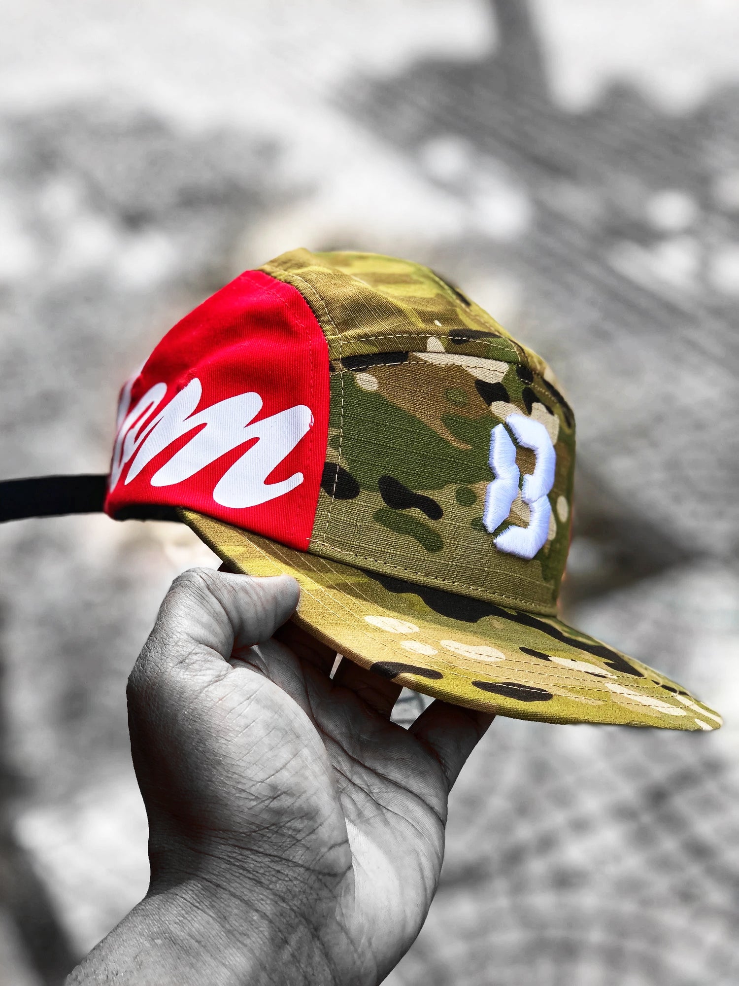 The Freedom Hat - Multicam blends rugged camouflage with bold red panels for a stylish, functional design.